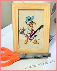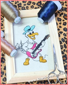 Lustige Möwe als Musiker Stickdatei mit maritimem Flair. Perfekt kombinierbar zur eigenen Möwenband – ideal für kreative Stickprojekte.
