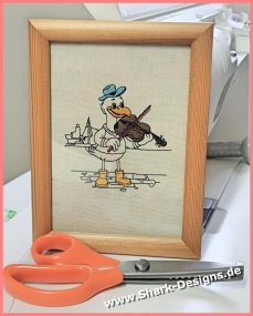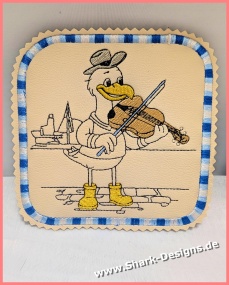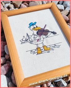 Lustige Möwe als Musiker Stickdatei mit maritimem Flair. Perfekt kombinierbar zur eigenen Möwenband – ideal für kreative Stickprojekte.