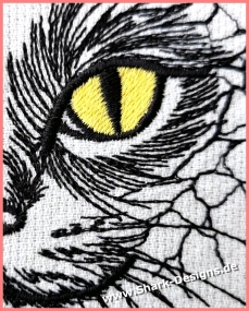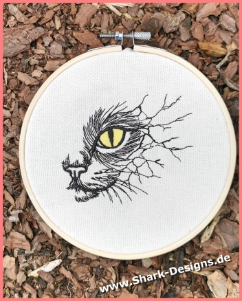 Katze, Stickdatei im modernen Line-Art Stil. Ausdrucksstarkes Tiermotiv mit feinen Linien – ideal für Kleidung, Taschen, Kissen & Deko.