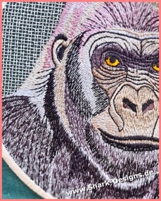 Stickdatei Gorilla – realistisches Tierportrait für die Stickmaschine