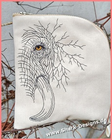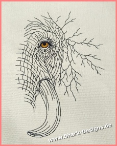 Elephant embroidery design in a modern line art style. Expressive animal motif with fine lines – ideal for clothing, bags, cushions & decorations.
