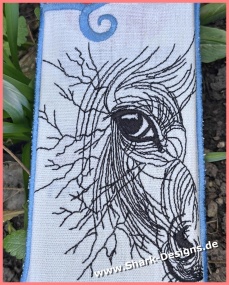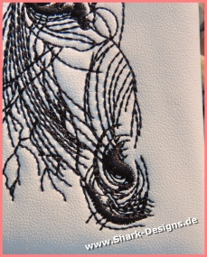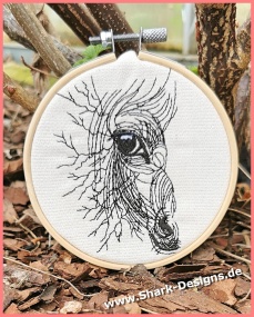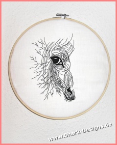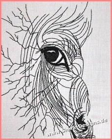 Horse embroidery design in a modern line art style. Expressive animal motif with fine lines – ideal for clothing, bags, cushions & decorations.