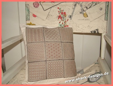 Particularly versatile square patterns each is embroidered 9x9 cm large, which are embroidered in one piece and which can really decorate very beautifully all possible materials.