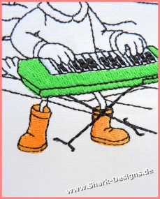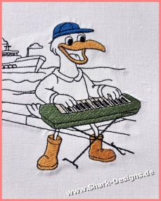 A fun seagull musician embroidery design with a nautical flair. Perfect for creating your own seagull band – ideal for creative embroidery projects.