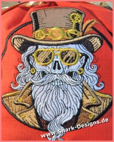 Sir Nikodemus combines the Steampunk era with a cool tattoo style. His artful beard and elegant hat with subtle gold accents make this design a real eye-catcher for Gothic, Rock, or Steampunk fans.